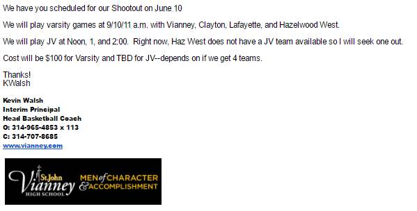 Vianney Shootout is games at Noon, 1PM, and 2PM.